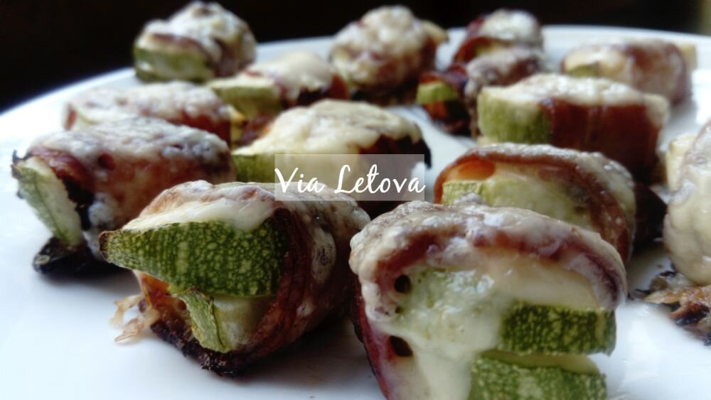 Рецепт рулетиков из кабачков в беконе и тертом сыре! Ну очень простой рецепт, который мне безумно нравится. Итак, если Вы любите: а) кабачки б) бекон с) сыр Тогда, скорее всего, вам будет по вкусу такое необычное сочетание. Ингредиенты: 1. Кабачки 2. Бекон 3. Тертый сыр Приготовление: Нарежьте на полу кружочки кабачки, по парочке заверните в ломтик бекона и отправляйте греться в духовку на 180-190 С. В зависимости от духовки, но когда бекон уже выпустит жир, немного подрумянится, а кабачок станет мягким и готовым, обсыпьте тертым сыром каждый рулетик и еще на минутку-две в духовку до аппетитной сырной корочки! Лично мне такое сочетание очень по вкусу;) Да и время приготовления 15-20 минут, что тоже приятно!