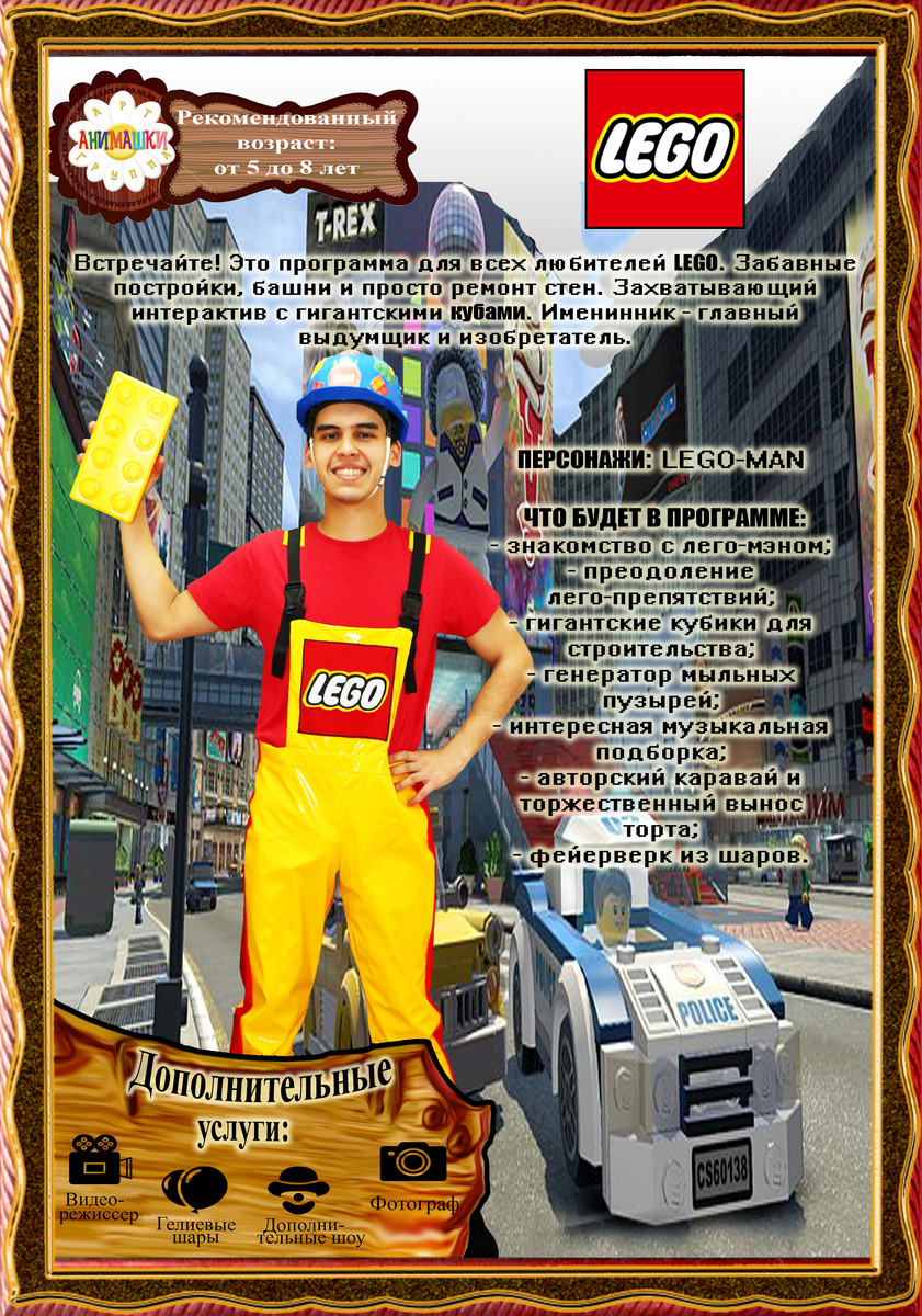 Встречайте! Это #программа для всех любителей# LEGO. Забавные постройки, #башни и просто #ремонтстен. Захватывающий #интерактив с гигантскими #кубами. #Именинник - главный выдумщик и #изобретатель.