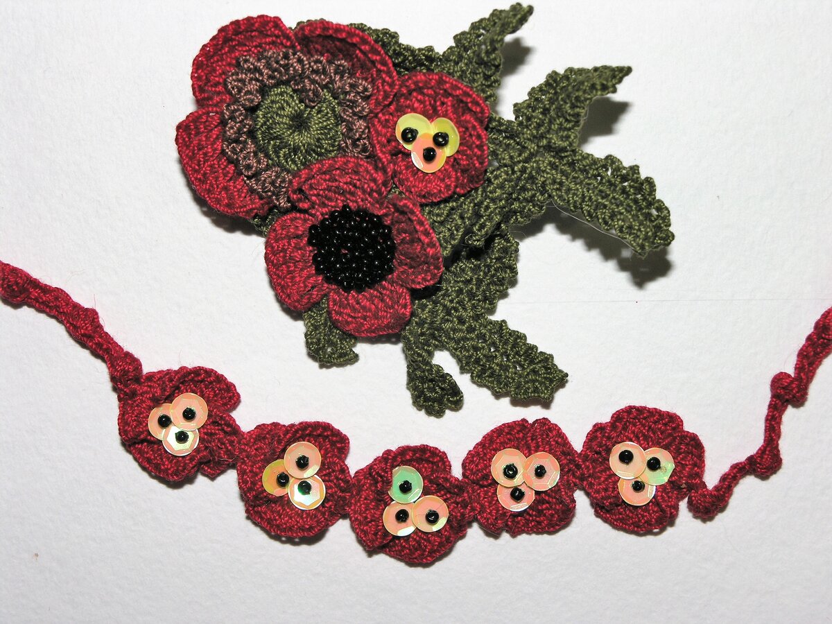 Для броши понадобится три мака. Как их вязать можно посмотреть здесь.