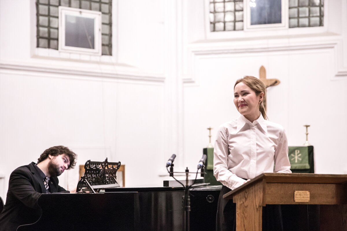 Аккомпанировать молодой примадонне взялся прославленный пианист Лукас Генюшас, уже не впервые участвующий в фестивале. Вся программа была исполнена в сопровождении не аутентичного инструмента (например, клавесина или органа, имеющегося в кирхе), а вполне себе современного рояля: удивительное и неожиданное решение в эпоху господства исторически информированного исполнительства. Оно по нынешним временам могло даже сойти за некоторую новацию и оригинальность, но, к сожалению, рояль фирмы «Бехштейн», каковым располагает зал собора, оставляет желать много лучшего. Тем не менее, между концертмейстером и певицей сложился тонкий и гармоничный ансамбль, а несовершенства инструмента не стали помехой, в чем, в том числе, проявилось и мастерство аккомпаниатора, по возможности их нивелировавшего. Но дуэтным форматом Генюшас не ограничился: в середине каждого из отделений им были исполнены сюиты -№ 8 фа минор и № 2 фа мажор (в переложении для фортепиано Алексея Курбатова). Продолжительные чисто инструментальные опусы напомнили аудитории о том, что великий Гендель – не только кудесник вокала, но и высочайший мастер музыки для клавира, яркой и глубокой, не уступающей творениям Баха.