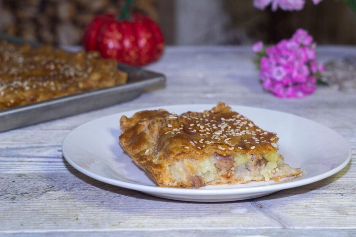 ПИРОГ СО СВИНИНОЙ СЛОЕНЫЙ. Выпечка на ужин!