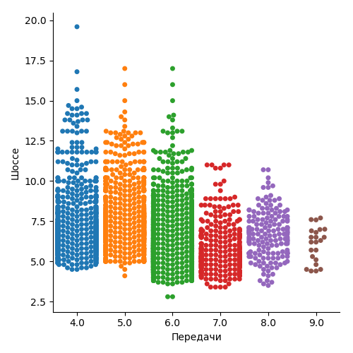 Попробуем с помощью анализа данных разобраться, влияет ли количество передач на расход топлива.