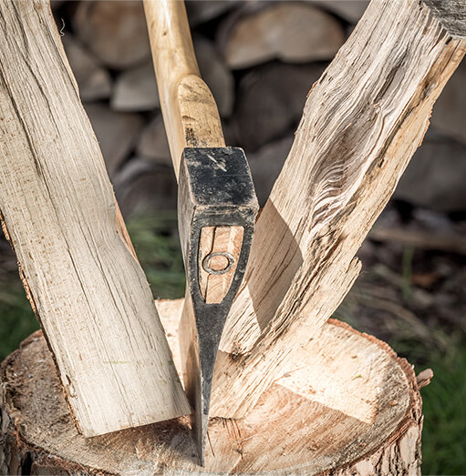 Колка дров требует не только силы, но и умения. Там, где специалист лихим ударом эффектно расколет полено, новичок будет долго потеть. Секрет никакой вовсе не секрет – нужно подготовить место, инструмент и потратить немного времени на практику, чтобы освоить технику колки. Рассказываем, как экономить время и силы при подготовке дров. НЕ ЗАГРОМОЖДАЙ РАБОЧЕГО МЕСТА! На площадке, которая предназначена для колки дров, должно быть достаточно свободного места. Во-первых, размах топором требует пространства, во-вторых, от расколотых поленьев регулярно разлетаются щепки. Если вы работаете под навесом или в сарае, то обращайте внимание на высоту потолка – она должна превышать вытянутую руку вместе с топором. Поленья ставятся на колоду, в роли которой выступает крепкий и толстый обрезок бревна. Чем больше сучков, тем лучше – они, подобно болтам, повышают прочность колоды. Колода обязательно стоит на твердой поверхности – либо утоптанная земля, либо бетон. БЕРЕМ ИНСТРУМЕНТ Инструмент для заготов