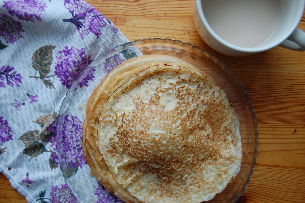 Самый лучший и простой рецепт блинов. Сколько бы я не перепробовала разных способов приготовления блинов, результат мне никогда не нравился. То слишком толстые, то слишком водные, то без маленьких дырочек и т.д. Но вот единственный рецепт, который зашел на "ура". Ингредиенты: - 5 яиц; - 0,5 л молока; - 3-4 ст.л. сахара; - соль щепотка; - пол стакана крутого кипятка; - 6-7 ст. л муки; - растительное масло 3-4 ст.л. Приготовление: Яйца разбить, добавить сахар, молоко, соль - все перемешать. Добавить муку ( 6-7 ст.л это для очень тонких блинов), перемешать. Пока мешаем, добавляем чуть больше половины стакана кипятка. Смешиваем. Даем постоять 5 - 10 минут, добавляем растительное масло. Жарим до готовности с двух сторон, масло на сковородку не надо добавлять (если у вас хорошее антипригарное покрытие на ней). Готово! Блины получаются тонкими, мягкими, сочными! Приятного аппетита! Если пост был полезный подписывайся на канал и делись рецептом с друзьями)