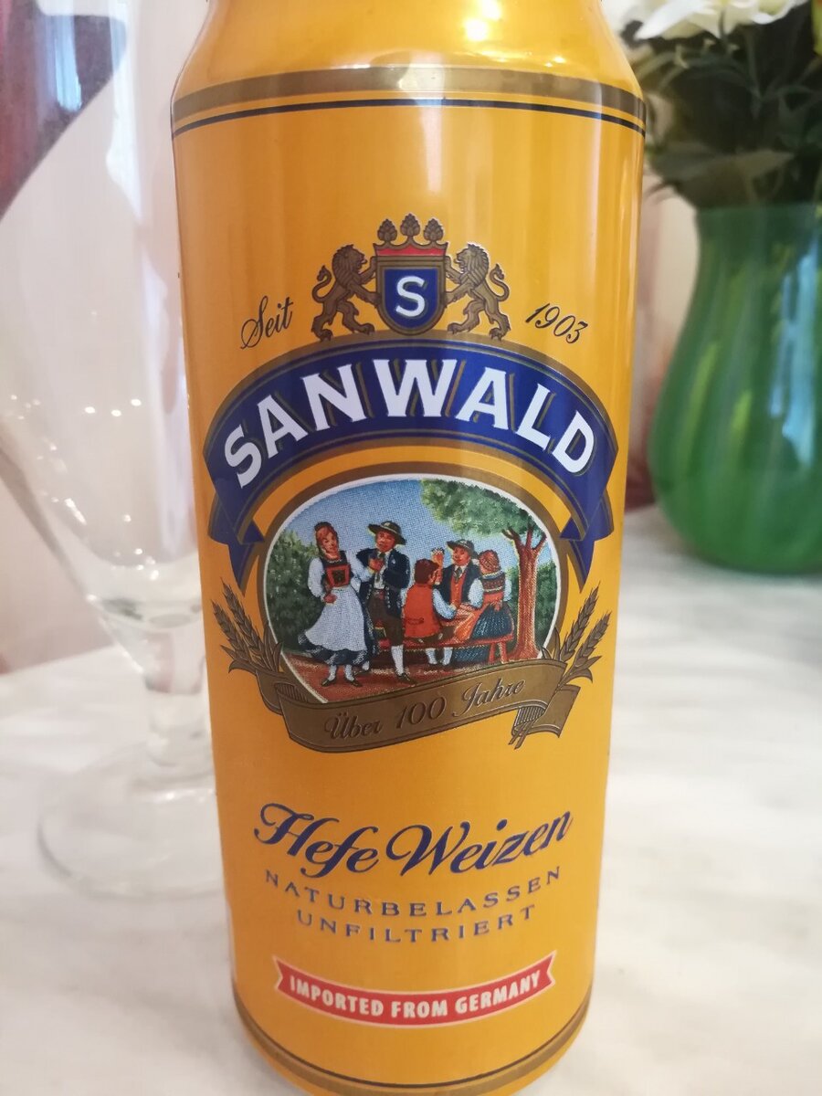 Всем привет! На выходных зашел в К&Б рядом с домом и решил себя побаловать импортным пивом, тем более у нас появилась пшеничка, которую до этого не пробовал - SANWALD Hefe Weizen , изготовленное в Германии, в городе Штутгарт. Я приобрел одну баночку на попробовать и хочу сегодня представить вам его на обзоре. Стоимость 1 банки в К&Б - 74.99 рубля. Состав: вода, пшеничный солод, ячменный солод, хмель, дрожжи. Дополнительных ингредиентов в виде специй и пряностей нет. Описание: Производитель: Германия, Штутгарт. Стиль: Weizen Дегустация: Ароматика данного пива очень слабая, слегка пахнет пшеничным солодом и немного бананом. На вкус очень водянистое, плоское, совсем не хватает плотности. Для меня показалось, что очень сильная кислинка. Послевкусия нет совсем. Пена очень обильная и долго не спадает. Пиво смотрится красиво в бокале, но вкус разочаровывает. Еще один раз убеждаюсь, что импортное пиво тоже может быть невкусным. Хоть и стоит 74 рубля, но даже для этой цены - де