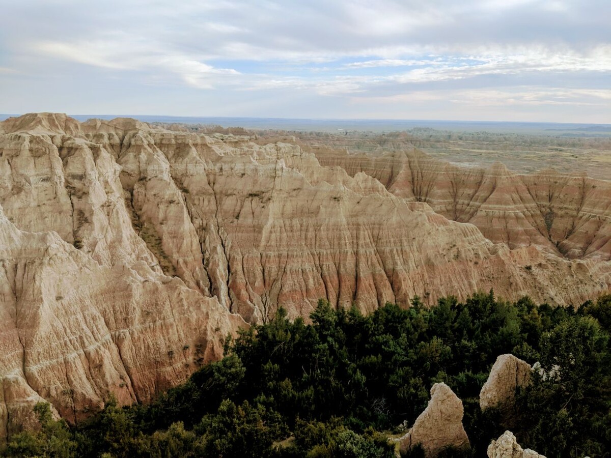 Урруру! Итак, мы доехали до горы Рашмор, заехали в медвежий питомник, а сегодня у нас завершающий день перед возвращением назад. И проведем мы его ещё в одном национальном парке: Бедлендс (Badlands National Park) Вообще, каждый рассказ о национальных парках в Штатах можно начинать с того, чем он являлся для коренных жителей, в текущем случае -- индейских племён Арикара (Arikara). Ещё десять тысяч лет назад индейцы окрестили это место “Mako Sica”, то есть Плохие Земли. Плохие в смысле бесплодные -- тут ничего путного не росло, а вот охота была превосходной. Как мне видится, название этого типа рельефа -- бэдленд (badland) также ведёт свои истоки от индейского наименования. Дадим слово википедии: Бедленд — вид сухого рельефа с глиняными почвами, состоящего из сети холмов с узкими гребнями, пересеченных оврагами. Непригоден для хозяйственной деятельности. Что, в принципе, и требуется доказать. Давайте же глянем на это своими глазами! Сеть холмов есть: Узкие гребни есть: Овраги есть: Да!