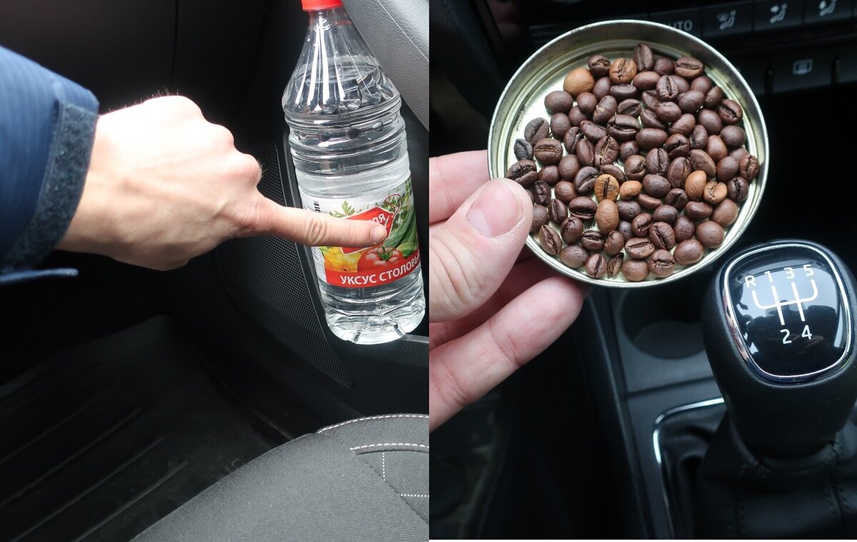 Если вы ещё ни разу не слышали о полезных свойствах уксуса или зернового кофе для своего автомобиля, то сегодня я вам расскажу, как я использую эти компоненты для решения некоторых задач. Казалось бы, чем эти два совсем несовместимых продукта могут иметь что-то общее, да ещё и применяться в машине? Но стоит подумать над тем, какие полезные свойства имеет каждый из этих продуктов, и всё становится уже более ясным и понятным. Итак, первым делом мы рассмотрим именно применения уксуса, так как в нашем "дуэте" он и должен быть первым, и немного позже вы поймёте почему крайне важна именно такая очередность. В салоне автомобиля со временем может появиться неприятный запах: сырость, табачный дым, пролитое на коврик или даже ковролин молоко. Все эти запахи устранить обычной чисткой иногда невозможно, а вот уксус является отличным "расщепителем" по этой части. Достаточно поставить открытую ёмкость с уксусом на коврик и оставить так на ночь, и с утра от запахов не останется и следа, кроме самог