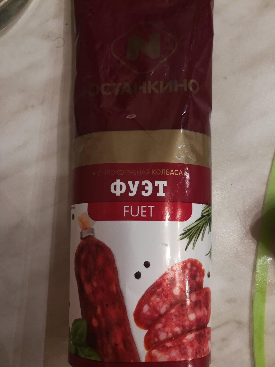 Всем привет! На выходных с женой наткнулись на вкусную сырокопченую колбасу в магазине "Пятерочка". Вообще очень редко покупаем колбасные изделия (вредно все - таки), но в данном случае колбаса была по акции за 89 рублей, поэтому решили взять на пробу. Внешний вид: Колбаса упакована в небольшую упаковку без вакуума. На лицевой части мы видим название колбасы и вариант сервировки. На вид колбаса вроде неплохая. Посмотрим соответствует ли фото на упаковке ее содержимому. Вес составляет 150 грамм. Состав: свинина, бекон свиной, соль, фиксатор окраски Е250, пищевые волокна, регуляторы кислотности: Е575, Е331(III), сахар, усилитель вкуса и аромата: Е621, пряности, ароматизаторы, антиокислители: Е301, Е316, красители. В составе присутствуют множество Е-шек. Будем надеяться, что все они безобидные. Что немаловажно - не используется мясо кур механической обвалки, которое любят совать во все колбасные изделия. Открываем упаковку, пробуем: Как мы видим, содержимое упаковки выглядит так
