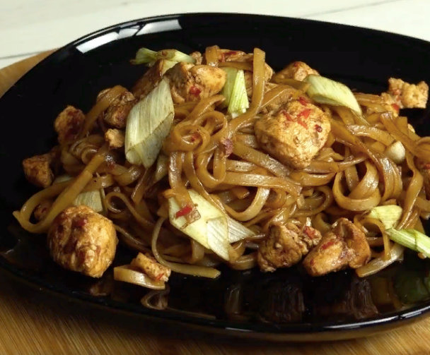 Хочется поделиться с вами очень простым рецептом из паназиатской кухни.Все мы знаем, что азиатская кухня полна изобилием морепродуктов,острой пищи,жгучих специй,риса и соевого соуса. А также всякими там экзотическими насекомыми. Так вот сегодня расскажу как можно приготовить азиатское блюдо прямо дома,так сказать не отходя от кассы.Для этого понадобиться крайне мало ингредиентов. Это будут ярко выраженные вкусы блестяще приготовленной курицы и острой рисовой лапшой.Просто пальчики оближешь..Ну что друзья поехали Ингредиенты: Способ приготовления Шаг 1. Замариновать мясо необходимо заранее.Куриное филе нарезать полосками,добавить растительное масло,перец чили,чесночёк,цедру лимона,и сок свежевыжатый лайма. Всё это дело приправить разумеется солью и поперчить.Оставьте в холодильнике на час,а если есть время можно и на 2-3 часа Шаг 2. После часа маринования,необходимо курицу обжарить на сильном огне до золотистой корочки.Затем добавить уже готовой отваренной рисовой лапшички Шаг