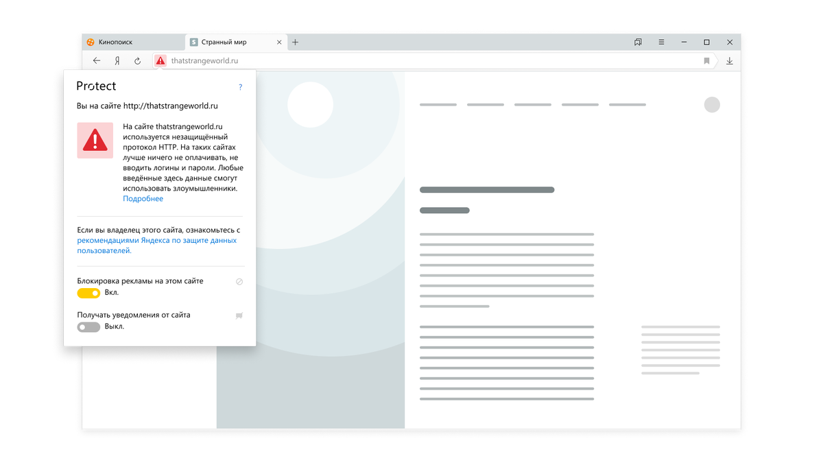 Мы считаем HTTPS одним из признаков качественного сайта, а его отсутствие — риском для пользователя. Поэтому сервисы Яндекса работают исключительно по HTTPS, а Яндекс.Браузер уникален тем, что автоматически перен