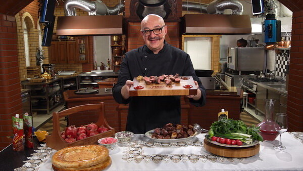 В «Дачном ответе» премьера сериала от Сталика Ханкишиева. В первой серии – простейший шашлык из баранины и говяжьей вырезки. И пусть многие скажут, что из вырезки лучше было бы сделать стейки. Поверьте: изменив своё отношение к шашлыку, вы получите по-настоящему праздничное блюдо! Ингредиенты: говяжья вырезка, филе барана, белый лук, красный лук, соль, гранаты или гранатовый сок, зелень. От вырезки, которая представляет собой единую мышцу, нужно отделить прикреплённую к ней мышцу. Обратите внимание, что не нужно резать сквозь пересечение мышц! С оставшегося куска мяса необходимо удалить всё лишнее – всевозможные кожные плёнки и жир нужно тщательно срезать. Очищенное мясо нарезаем на кусочки, которые должны быть чуть крупнее грецкого ореха. Сталик Ханкишиев: «Вкус шашлыка образуется на поверхности кусочка мяса, но не внутри его. Кроме того, такие кусочки пожарятся очень быстро, и мы сохраним в них максимум сока». Самое время нанизать мясо на шампуры. Кусочками, у которых одна часть то