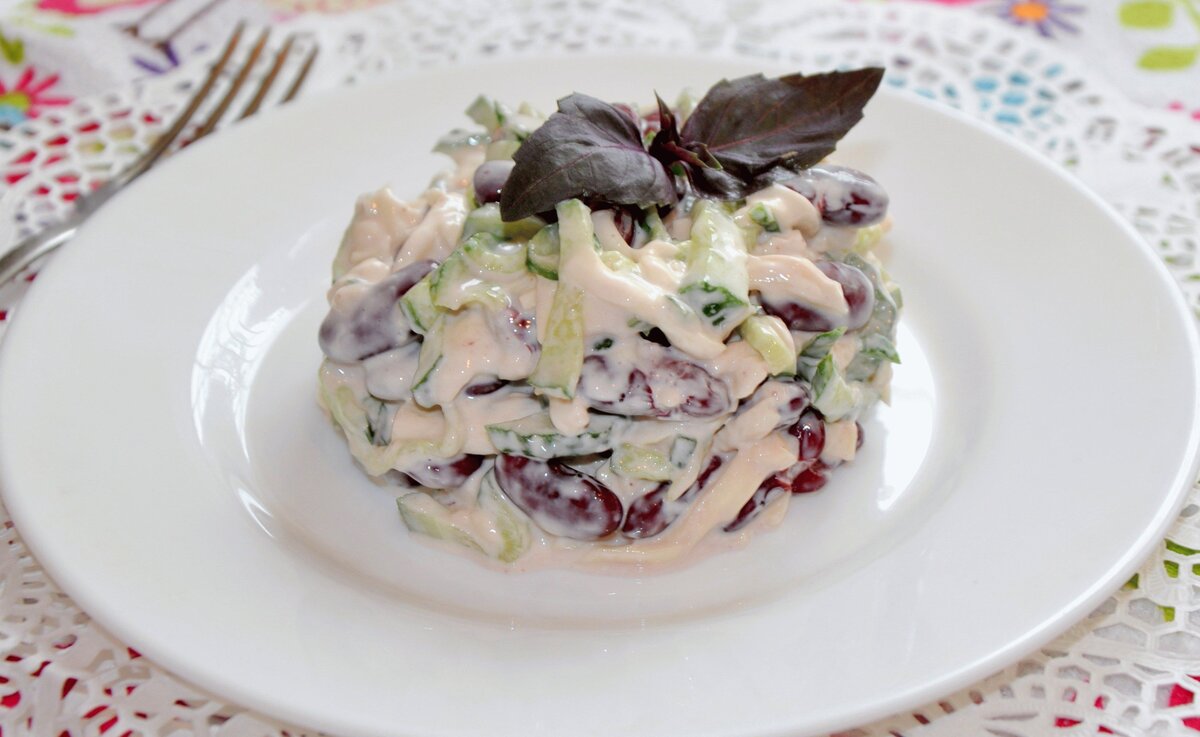 Для приготовление этого легкого салата нам понадобится:1 баночка консервированного тунца/в собственном соку/;1 баночка консервированной фасоли;листья салата/2-3 шт./;свежий огурец-1 шт.;соль и сметана по вкусу. Начнем приготовление! С баночки тунца слить сок и переложить его в миску, размять вилкой. С фасоли сливаем жидкость добавляем ее в миску. С огурцов счищаем кожицу/по желанию/ и нарезаем мелкой соломкой, отдельно выкладываем их на тарелку, солим. Оставляем на 5-6 мин., слить с огурцов сок и переложить в миску с ингредиентами. Для украшения салата, можно нарвать или нарезать листья салата, заправить все сметаной, тщательно перемешать и красиво выложить на блюдо. Минимум продуктов, красиво и вкусно. Приятного аппетита! Если Вам понравился рецепт, подписывайтесь на мой канал.