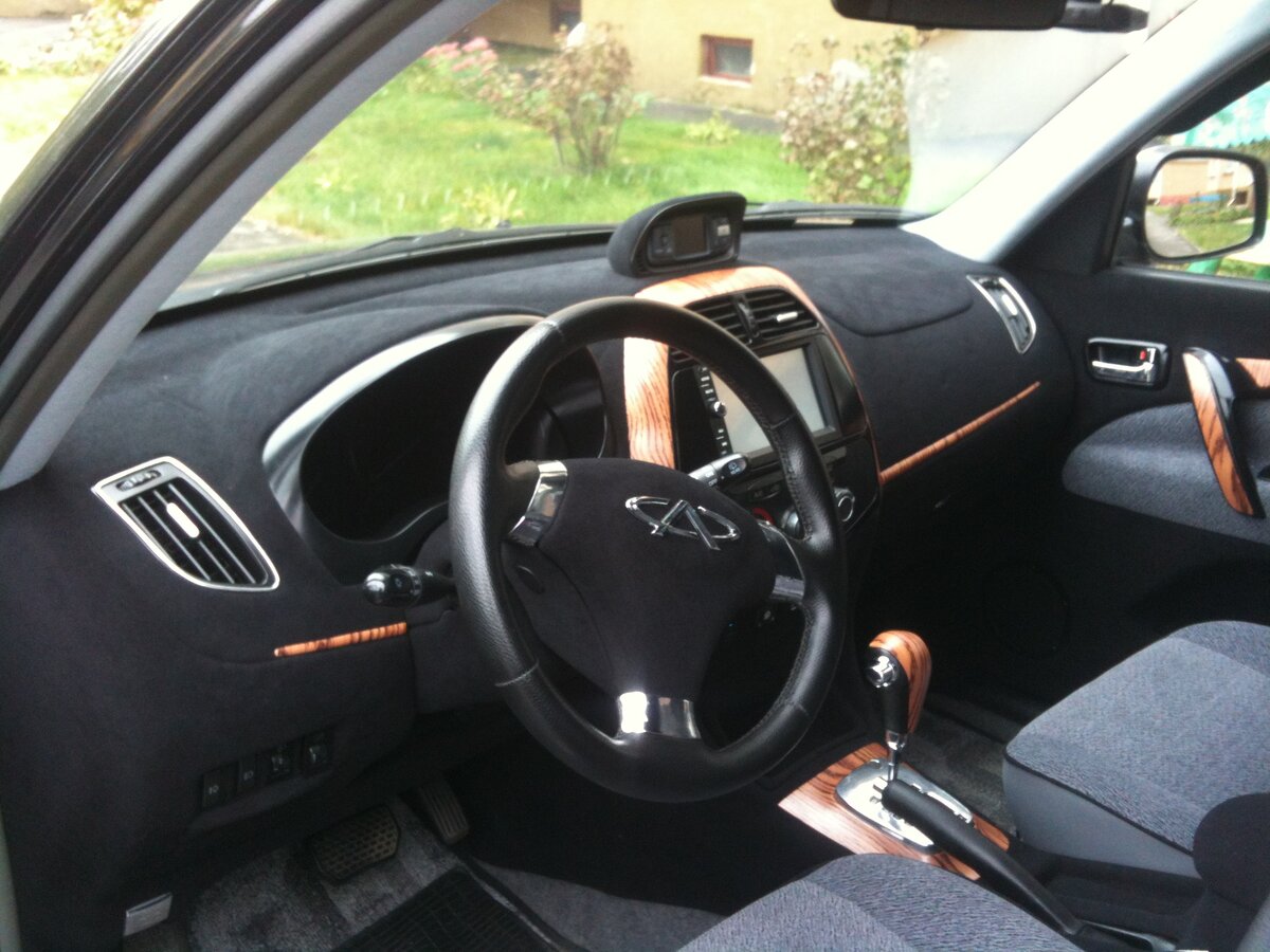 Немного отвлекусь от стройки, Крыма и напишу про свое хобби, которым занимался и занимаюсь по сей день (правда сейчас времени на это гораздо меньше). Это любимое занятие переделать что-нибудь в своем авто. Подходит это в первую очередь бюджетных машин т.к. в дорогой это делать просто глупо. Салоны таких авто как обычно имеют дешевое оформление, кругом пластик и не более. ТИГГО была машина для поездок в Крым из Украины, а когда пришлось полностью переезжать пришлось ее продать, т.к. в России машины гораздо дешевле и можно приобрести за те же деньги гораздо лучшее авто, что я и сделал - поменял ТИГГО на ТУАРЕГ за те же деньги. Но это экспромт, а касательно хобби расскажу подробнее. Первое это полная шумоизоляция и перетяжка всего салона вместе с сиденьями. Материал использовал кора (автомобильный бархат - можно так сказать) брал разного цвета для торпедо, стоек, сидений.... Делал дополнительные декоративные вставки. Все вставки обтягивал простой самоклеющей пленкой из магазина, цвет мен