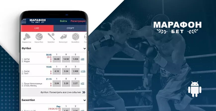 marathonbet, мобильные букмекеры, ставки на android Скачать приложение Популярный офшорный букмекер Marathonbet создает идеальные условия для беттинга. Клиенты БК имеют возможность делать ставки с десктопной и мобильной версий сайта, а также через нативное приложение для ОС Android. Эта программная разработка позволяет мониторить спортивные события и делать ставки, независимо от места и времени. Беттинг со смартфона – это функциональное и удобное решение, не зависящее от наличия рабочей ссылки на зеркало сайта. В этом материале эксперты online-bookmakers.com проанализировали функциональные возможности приложения, описали особенности регистрации и пополнения счета, доступные пользовательские настройки, а также оценили дизайн и интерфейс программы. Здесь же размещена ссылка на скачивание приложения. Marathonbet для ОС Андроид считается одним из лучших приложений, разработанных для онлайн ставок. Пользователям предлагаются те же высокие коэффициенты и минимальная маржа, что и в десктопн