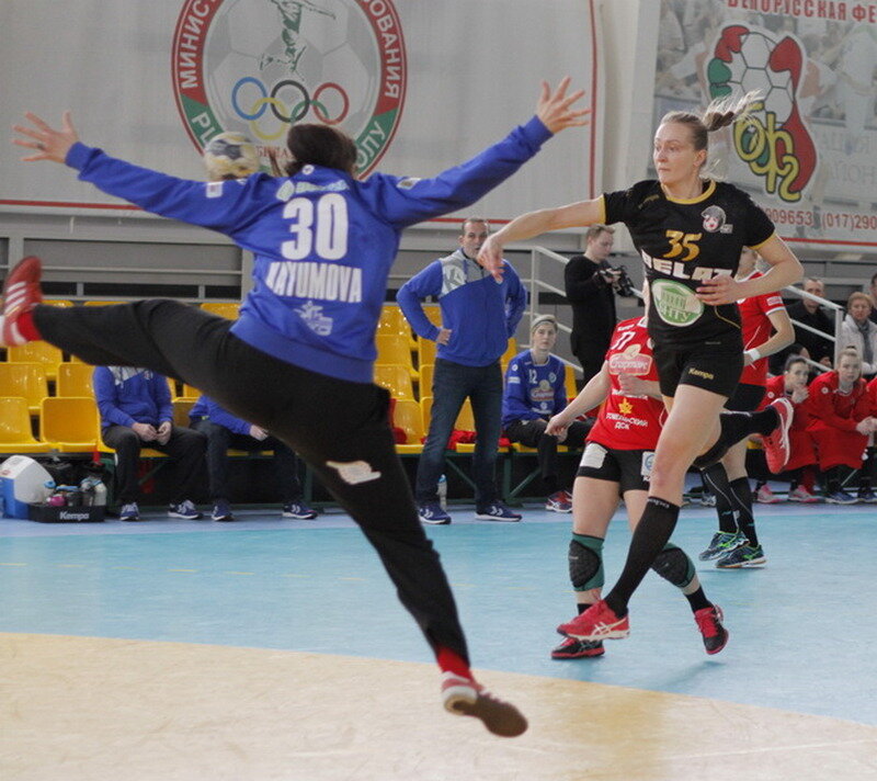 Очередной триллер с элементами боевика учинили БНТУ-БелАЗ и "Гомель". Итог — стратегически выгодная гомельчанкам ничья, оставившая их фаворитом чемпионской гонки. Чемпионат Беларуси 16.03. Минск. БНТУ-БелАЗ (Минск) — Гомель — 27:27 (16:13) БНТУ-БелАЗ: Сафонова, Бурдук; Гесть (н.в.), Сухомирова (2), Гутова, Артюхович (2), Аришина (3/1), Кудрявцева (5), Коновал (6), Маркелова (1), А.Голубева (1), Рудковская (4), Янковская (3), Левченко, Арукве (н.в.). Гомель: Шулега, Каюмова; Мисоченко, Шамановская (4), Мокат, Силицкая (1), Смолинг (5), Ю.Голубева (4), И.Дронова (н.в.), Воронова (н.в.), И.Тризно (1), Редька (5), Ахраменко (1), Балануца (н.в.), Цырибко (3/3), Котина (3). Турнирное положение: 1.БНТУ-БелАЗ — 43 очка (24 игры). 2.Гомель — 43 (23). 3.Городничанка — 24 (23). 4.Витебчанка — 18 (23). 5.Берестье — 17 (22). 6.РЦОР-БНТУ-2 — 12 (23). 7.Березина — 5 (24). Аккурат в день, пожалуй, гвоздевого первоэтапного матча рулевой "Гомеля" и сборной Беларуси Томаж Чатер отмечал не просто еще один