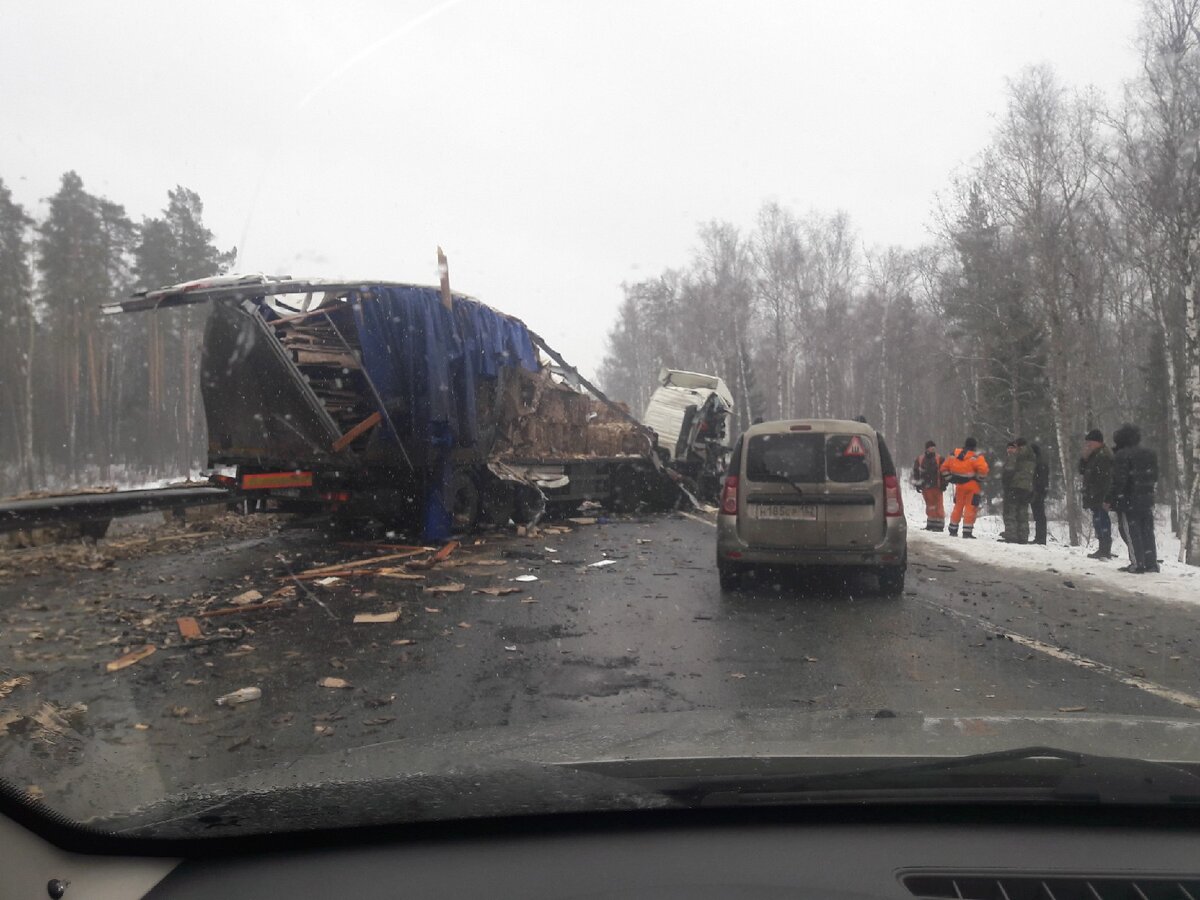 16 марта 2019 года на 228-м км трассы М-7 случилось жуткое ДТП. Фура не успела остановиться и влетела в "Камаз" дорожников.
