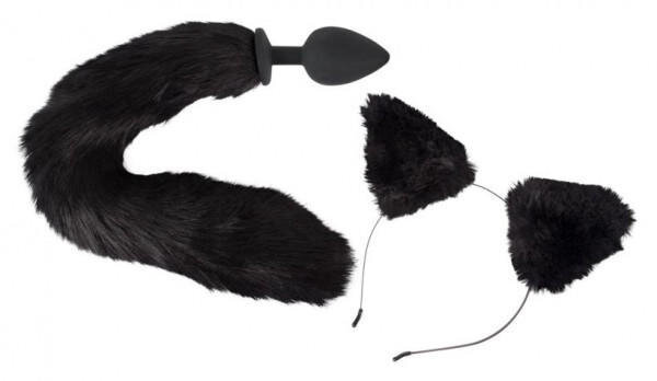Игровой набор Pet Play Plug & Ears. Состоит из ободка с кошачьими ушками и анальной силиконовой пробки с длинным черным меховым хвостиком. Длина хвоста - 37,7 см. Длина пробки - 9,3 см., диаметр - 4,1 см. Заказ оформлять на нашем сайте 🔝 ссылка на товар
