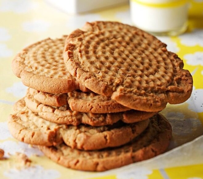 Время на приготовление: около 30 минут Ингредиенты: 100 гр мягкого сливочного масла 1 стакан арахисового масла 1 стакан сахара 1 чашка коричневого сахара 3 больших яйца 3 стакана пшеничной муки 2 чайные ложки соды 1/4 чайной ложки соли Порядок действий: Разогрейте духовку до 190°. В большой миске взбейте сливочное масло, арахисовое масло и сахар до легкой и пушистой консистенции. Добавьте яйца, по одному, хорошо взбивая после каждого добавления. Смешайте муку, пищевую соду и соль, после чего добавьте в сливочную смесь и хорошо перемешайте. Скатайте массу на шарики диаметром около 3 - 5 см. Комочки "разбиваем" мясным молотком и укладываем на несмазанный противень. Выпекаем 10-15 минут. Готово! Приятного аппетита! Самое время налить себе стаканчик молочка или чая, кому как нравится! Сведения о питательных веществах: 1 печенье: 180 калорий, 9 г жиров (2 г насыщенных жиров), 18 мг холестирин, 128 мг натрий , 21 г углеводов (12 г сахара, 1 г клетчатки), 3 г белка.