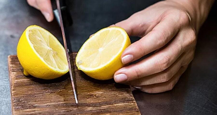 - Разрежьте лимон пополам.