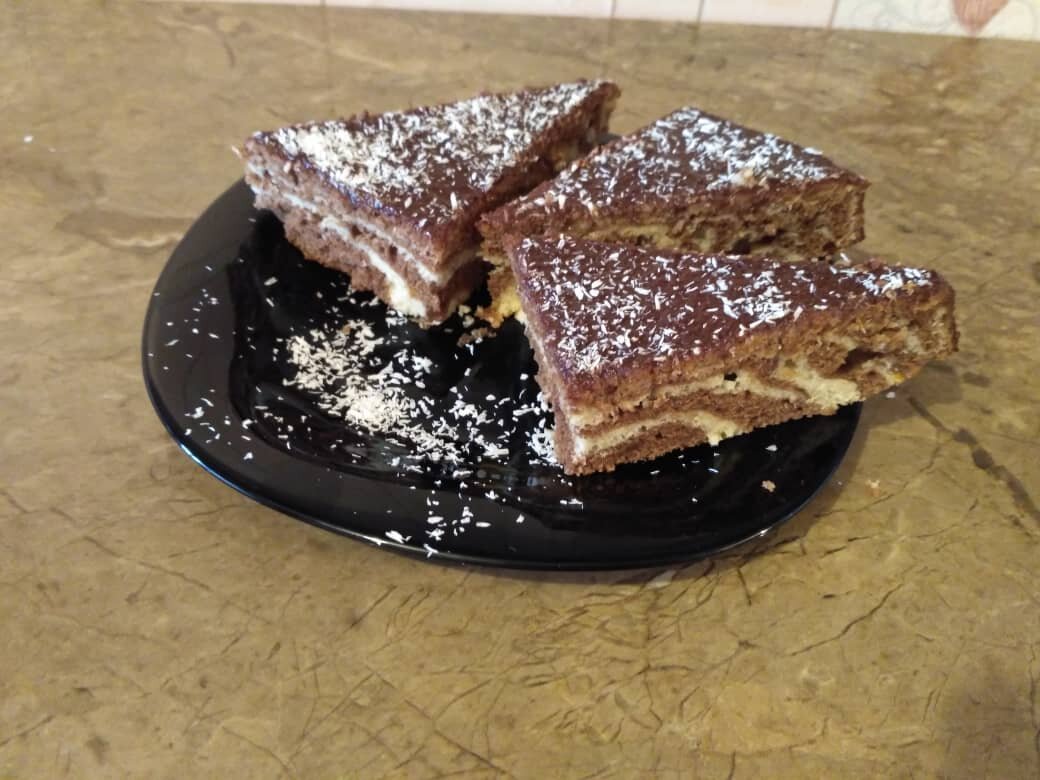 Рецепт пирога "Зебра" очень прост несмотря на то, что внешний вид этого десерта соответствует требованиям лучших ресторанов. Нежный двухцветный бисквит и шоколадная глазурь - неужели можно придумать что-то лучше к чашечке свежесваренного кофе? Ингредиенты: мука - 250-300 гр. яйца - 3 шт. растительное масло - 100 мл. молоко или кефир - 100 мл. сахар - 150-200 гр. соль - щепотка. разрыхлитель - 0.5 упаковки какао - 3 ст.л. 1. В большой чаше соединяем сахар, соль, яйца, растительное масло. Взбиваем, добавляем молоко. Перемешиваем. 2. Просеиваем в чашу муку с разрыхлителем. Разделяем тесто на две части, в одну из которых добавляем какао. 3. В форму, смазанную маслом, по одной ложке выливаем два вида теста (тёмное и белое). Тесто должно равномерно растечься по форме. 4. Ставим в разогретую духовку и выпекаем при t 170 в течение 20 минут (в зависимости от духовки время выпекания может увеличиться). Готовый пирог полить растопленным шоколадом и посыпать кокосовой стружкой. Пр