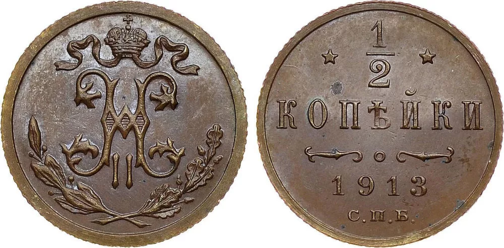 1/2 копейки Николая II. Стоимость медных монет Российской империи.