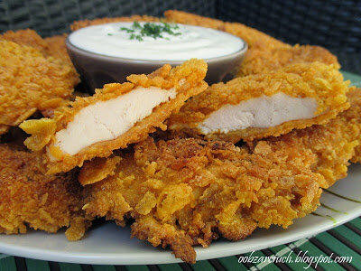 Самородки в кукурузных хлопьях Золотые и хрустящие кусочки курицы - отличная закуска для вечеринки и пива ингредиенты: