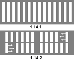 Оба вида переходов обладают «шириной» в пространстве. Это строго выделенная область на проезжей части (ПЧ). Границы этой области определяются в первую очередь разметкой 1.14.1 или 1.14.2, известной как «зебра» (1.2).