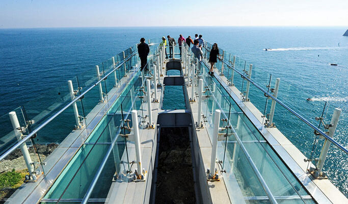 Это очень живописное место в Пусане и обязательно к посещению. Ехать туда следует в хорошую погоду, так как рядом находится потрясающий парк на возвышенности - корейцы любят долгие пешие прогулки. Но длительный подъем по лестницам будет компенсирован великолепными пейзажами, природой и свежайшим морским бризом. Поэтому подойдите серьезно к выбору одежды и обуви. Кроме того, Skywalk место очень ветреное - стоит прихватить кофту или ветровку. Наш визит в Пусан сопровождался тайфуном в Японии, понятное дело, со всеми вытекающими погодными последствиями. У нас выбора не было - купили дождевики и поехали. Развлечение так себе, честно говоря. Ветер шквальный - срывает дождевик. Дождь залепляет глаза, что ничего не видно. Хорошо, что я додумалась взять очки, ведь они спасают не только от солнца, но и от дождя, который из-за ветра идет "параллельно" земле) Сам Skywalk был закрыт, но было принято волевое решение взбираться по лестнице до парка. Лужи и месиво грязи под ногами не мешали на