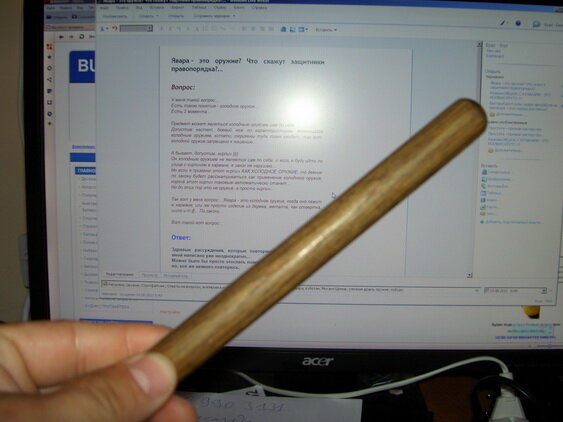 Но до этих пор это не оружие, а просто кирпич… Так вот у меня вопрос… Явара — это холодное оружие, когда оно лежит в кармане, или же просто изделие из дерева, металла, как отвертка, шило и т.д… По закону… Вот такой вот вопрос… Ответ: Здравые рассуждения, которые повторяют то, что уже было мной написано уже неоднократно…