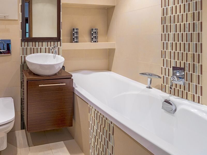 Зонирование ванной комнаты отделочным материалом
