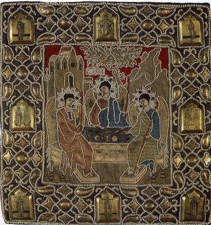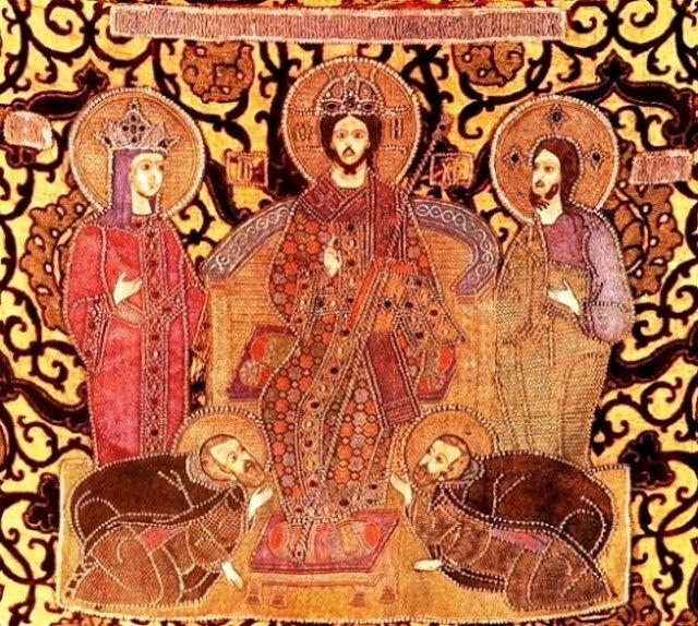 Чадолюбивый отец Борис Годунов в детские годы окружил дочь Ксению и сына Федора добром и лаской, а в отроческие годы дал своим детям самое лучшее по тому времени образование. Не будучи царевной с колыбели. Ксения получила воспитание, в высшей степени соответствующее этому титулу. В круг старинного воспитания девочек на Руси обязательно входило рукодельное искусство, в том числе вышивание. В пору обучения царевны художественное лицевое шитье обрело особую популярность и совершенство исполнения. Девушки из знатных семей, боярыни и даже царицы золотыми и серебряными нитями, разноцветными шелками, жемчугом и драгоценными камнями вышивали по бархату и плотному шелку многофигурные сюжетные картины. Одной из самых замечательных продолжательниц традиций лицевого шитья, приближающегося по сложности к ювелирному искусству, была и Ксения Годунова. В музее Троице‒Сергиевой лавры хранятся два примера древнерусского шитья, считающиеся рукоделием царевны ‒ вкладом, сделанным ею в период св