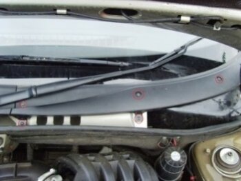 Салонный фильтр предназначен для фильтрации и очищения воздуха, поступающего в салон автомобиля из окружающей среды. В Ладу Гранту, начиная с ее самой простой базовой комплектации, также устанавливается салонный фильтр, который рекомендуется регулярно менять через 5-7 километров. Если вы довольно часто передвигаетесь по пыльным дорогам, фильтр нужно менять как только из воздуховодов начинают идти частички пыли или посторонний неприятный запах. Если такой фильтр вовремя не менять, печка начинает плохо работать и воздух, поступающий в салон, не очищается. Мелкие частицы пыли вдыхаются водителем и пассажирами, что негативно сказывается на самочувствии и здоровье. Последовательность замены: 1. Прежде всего необходимо дать двигателю автомобиля полностью остыть, для чего откройте капот. 2. Дворники переведите в вертикальное положение. 3. Используя отвертку необходимо открутить 5 саморезов и снять декоративную пластиковую накладку возле лобового стекла (около рычагов дворников). Пластик