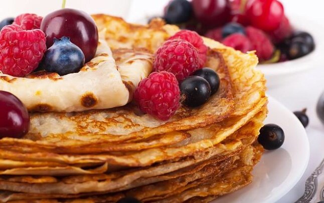 Блины могут быть частью питательного завтрака, если вы используете несколько полезных уловок. Например, блины из цельнозерновой муки, по сравнению с большинством купленных в магазине смесей или с блинами, приготовленными классическим рецептом, экономят около 30 калорий, 3 грамма насыщенного жира и 4 грамма общего сахара на порцию Повышение клетчатки. Большинство традиционных рецептов блинов требуют белой муки, которая имеет нейтральный вкус, но не очень полезна для питания. Чтобы сделать здоровые блины, используйте другую цельнозерновую муку (кукурузная мука, овес или гречка). Цельнозерновая мука содержит 16 граммов клетчатки на чашку по сравнению с 3 граммами клетчатки в белой муке. Для более мягкого вкуса вы можете использовать белую цельнозерновую муку, которая больше всего похожа на белую муку со слегка ореховым вкусом, но обычная цельнозерновая мука также подойдет. Если вы не решаетесь делать 100% блины из цельной пшеницы, начните с замены половины белой муки на цельнозерновую му