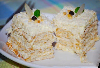 Быстрый торт таит во рту...без выпечки всего за пол часа... Получается настолько лёгким нежным и воздушным... Ингридиенты: Вместо бисквита (коржей) 300-350гр. печенья (можно топленое, лучше простое без вкусное такое как галеты) 1-й слой : 150гр. варенки 2-й слой (крема): 2 ст.л. сахарной пудры (можно обычного сахара) 250мл. жирных сливок не менее 33% 3-й слой (крема): 100гр. сахара 2ст.л. крахмала 1,5ст. молока 30гр. муки 100гр. масла сливочного пакетик ванилина Верх: 150гр. кокосовой стружки Рецепт: Коржи нам выпекать не надо, поэтому сразу приступим к готовке кремов... Первый крем-слой из вареной сгущенки. Второй слой будет со взбитыми сливками (нужно просто взбить охлаждённые сливки с сахарной пудрой миксером). Третий слой заварной...соединяем в емкости сахар с молоком, добавляем ванилин и засыпаем крахмал (обязательно через сито, чтоб не было комочков), теперь добавляем муку, все тщательно перемешиваем и ставим на плиту (можно в кастрюле с толстым дном, можно на паровой бане), гот