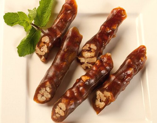 Я обожаю это лакомство, но только тогда, когда оно правильно приготовлено. А еще я не очень люблю сухофрукты, поэтому в этом рецепте их нет. Будут только орехи. Но вы можете добавить то, что вам по душе. Нам потребуется: Самое сложное - это сделать кисель. Виноградный сок нужно варить на протяжении 2-3 часов, постепенно подсыпая в него сахар и постоянно помешивая, а затем оставить остужаться. Грецкие орехи нужно поделить на четвертинки и, при помощи иголки, нанизать их на толстую прочную нить. На концах сделать узелки. Слишком длинные связки делать не нужно, достаточно 20 см. В кисель добавляем муку и хорошо перемешиваем. Ставим на тихий огонь и варим минут тридцать. Следите за тем, чтобы не было комочков. Затем выключаете огонь, берете связку с орехами и макаете в кисель. Оставляете на 5 минут и снова макаете. И так 3-4 раза. После этого чурчхелу нужно подвесить в проветриваемом месте на пару дней. Грузинская чурчхела с орехами готова! Приятного аппетита! З.Ы. Для лучшей вязкости
