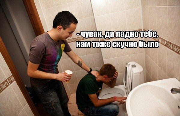 Помнит только то, что по дороге в туалет блювал.