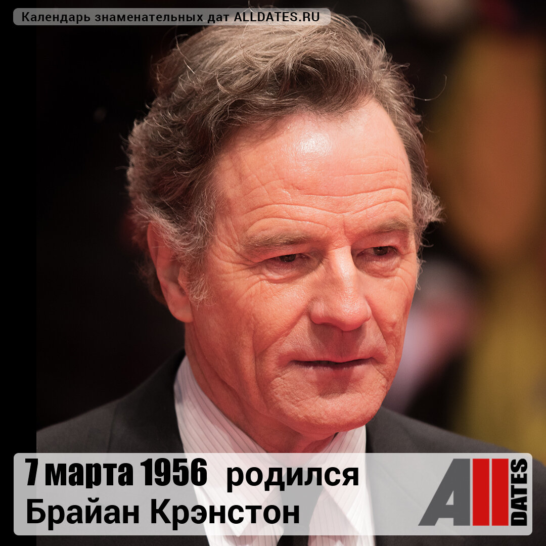 7 Марта 1956 - Родился Брайан Крэнстон (Bryan Cranston), актер, режиссер, сценарист. Фильмы: "Трамбо" (2015, Далтон Трамбо), "Годзилла" (2014, Джо Броуди), "Вавилон 5" (Эрикссон). Оскар (2016), Номинант. Лучшая мужская роль. #БрайанКрэнстон #Крэнстон #BryanCranston #Cranston Календарь знаменательных дат из мира музыки, кино, театра и телевидения. #Календарь #AllDates #МузыкальныйКалендарь #ДеньРождения #Юбилей #Сегодня #Завтра #Дата #Даты #Родился #Родилась #Calendar #Birthday #HappyBirthday #Anniversary #Jubilee #Today #Tomorrow #Date #Dates #Kalender #Calendarium