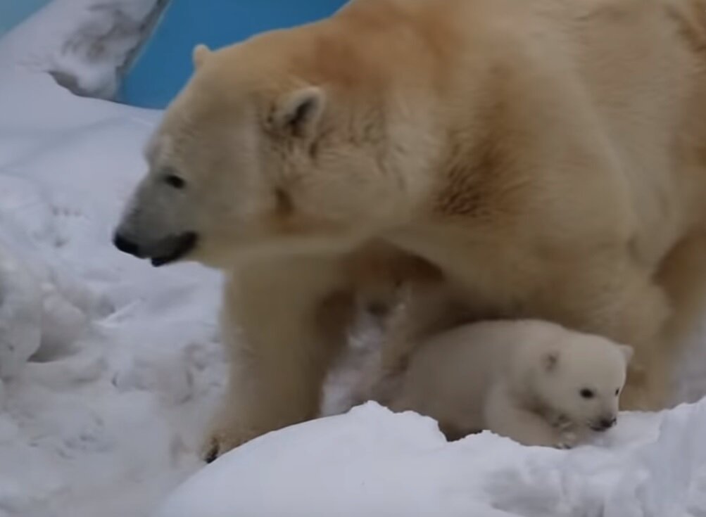 В декабре 2018 года в Новосибирском зоопарке родились медвежата у белой медведицы по имени Герда. Это уже её третьи роды. Малышей и маму никто не беспокоил и в вольер не входили, чтобы условия максимально приближались к природным. И вот мама вывела ребятишек из берлоги. Работники зоопарка стараются не тревожить Герду и даже снег не чистят рядом. У Герды уже появлялось два малыша, один в 2013 году (сейчас живет в Японии), второй в 2015 (живет в Китае). Когда дочка увидела видео с медвежатами, выложенное на Ютубе, она сразу вспомнила, как мы ходили летом в зоопарк. Теперь каждое утро начинается с вопроса: «Мама, а когда уже можно идти к медвежатам в гости?» А ещё мы узнали, что рождаются медвежата очень беспомощными и незрячими, а весят всего около 600-700 грамм. Через три дня (11.03.2019) медвежатам уже исполнится 3 месяца.