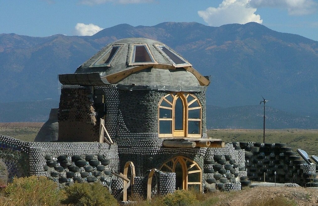 Earthships тип "зеленых" зданий, построенных с использованием отходов шин автомобилей и других переработанных материалов. Они используют природные явления планеты, чтобы обеспечить все коммунальные услуги - используя энергию солнца и дождя, чтобы обеспечить тепло, энергию и воду. Это здания, которые нагревают и охлаждают себя, собирают собственную воду и используют растения для очистки сточных вод.