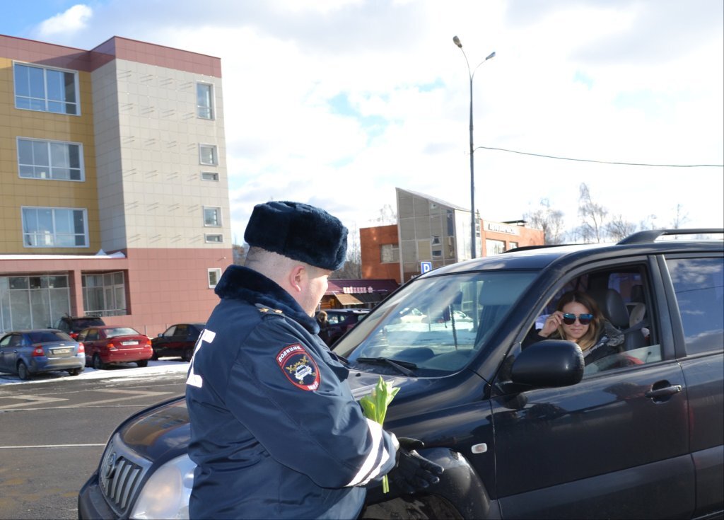 Хотели бы Вы, чтобы Вас остановил сотрудник ГИБДД? А чтобы подарить цветы в преддверии 8 марта?