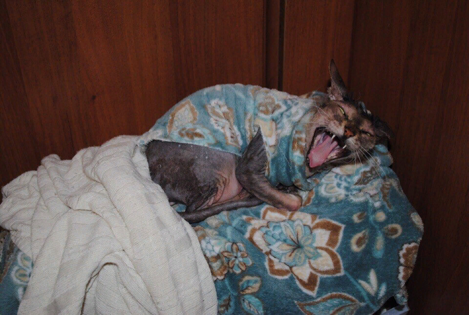 Хозяевам Лялечка оказалась не нужна, причины банальны: КОШКА ГАДИЛА, поэтому ее предпочли выкинуть 3 года назад в морозы в холодный подъезд. Как так!? не знаю, скорее всего гадила она из-за болезни- Ляля вся была покрыта расчесами и ранами.