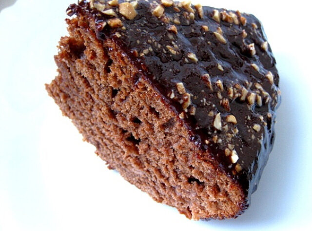 Приветствую, всех, временно экономных. В преддверии праздника предлагаю простецкий, но очень вкусный рецепт торта, справится даже рукожоп. Никаких специальных техник для приготовления не нужно, просто все смешать в одной посудине и только уксус, добавить в самом конце. Потом найти емкость для запекания, вылить тесто и запечь. 40 минут при 180С. Останется только дождаться пока остынет( особенно продвинутые могут поместить корж в целлофановый пакет и убрать в холодильник на пару часов, говорят он от этого становится супервлажным). На финише украсьте торт по своему усмотрению. У меня шокоглазурь из растопленной шоколадки со сливками и маслом + рубленных орешки. Можете извратиться и разрезать корж на две части, прослоить кремом, но это по желанию. Уверяю вас, если вы даже просто его посыпете сахарной пудрой - всем будет очень вкусно). Ингредиенты: Мука — 250 гр. Сода — 1,5 ч.л. Соль — 1 ч.л. Какао — 55 гр. Сахар — 300 гр. Яйца — 2 шт. Сливочное масло(растопить) — 60 гр. Оливковое масло(ил