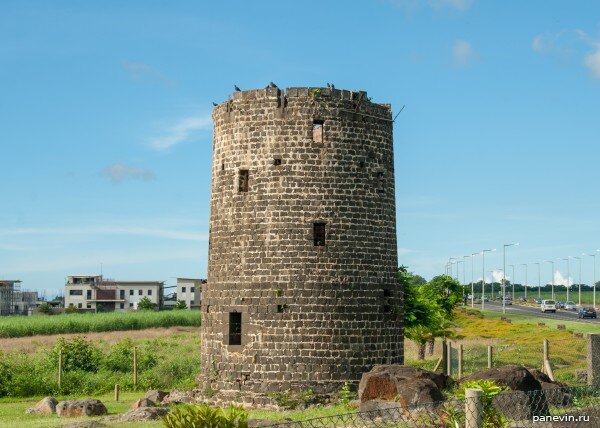 Из всей фортификации на Маврикии мне попалось только пара башен. Это — одна из них. Что поразительно, но вокруг башен нет никаких следов оборонительных сооружений и каких-либо защитных укреплений. И от моря они находятся на солидном отдалении, т.е. препятствовать высадке десанта не могут. Находится у торгового центра Cascavelle, пересечение дорог A3, B2 и Coastral road (в городке Flic en Flac). По другую сторону от трассы A3 такие замечательные виды. Полёт инженерной мысли ландшафтного дизайна, это уже возле самого торгового центра. Оригинал заметки: Маврикий: старинная башня.