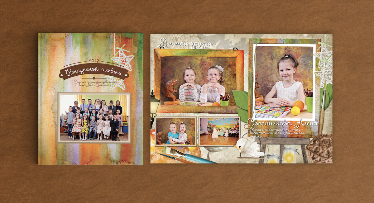 В том случае если вы не готовы сами верстать выпускные альбомы у меня есть услуга по верстке выпускных альбомов для детского сада и услуга по верстке выпускных альбомов для школы. В обоих случаях я сам не только сверстаю, но и закажу печать, поэтому вы просто получите готовые альбомы.