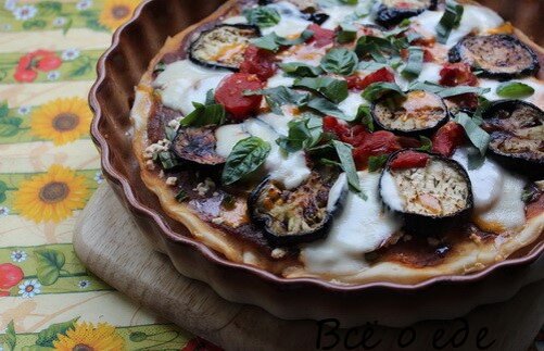 Пицца с солеными баклажанами и ветчиной Для приготовления этого блюда нам понадобится: Для теста: Пшеничная мука 270г Дрожжи 18г Вода 0,2 стакана Яйца 2шт. Сливочное масло 50г Молоко 1/2 стакана Соль щепотка Для начинки: Баклажан 2шт. Ветчина 200г Растительное масло 120г Столовый уксус 20г Сливочное масло 10г Специи по вкусу Соль Для соуса: Сметана 4 ст.л. Чесночный кетчуп 5 ст.л. Черный молотый перец 1/2 столовой ложки Соль щепотка Для смазывания противня: Сливочное или растительное масло Итак, приступаем к приготовлению. Подогретую воду смешать с теплым молоком, всыпать дрожжи, перемешать до однородного состояния. Понемногу добавить муку и распущенное на водяной бане сливочное масло, вбить яйца по одному, посолить и замесить однородное тесто. Накрыть его льняной салфеткой и оставить в теплом месте до тех пор, пока полученная маса не увеличится примерно в два раза. Затем раскатать тесто в тонкую лепешку, выложить на смазанный маслом противень и разровнять. Нарезать баклажаны небольши