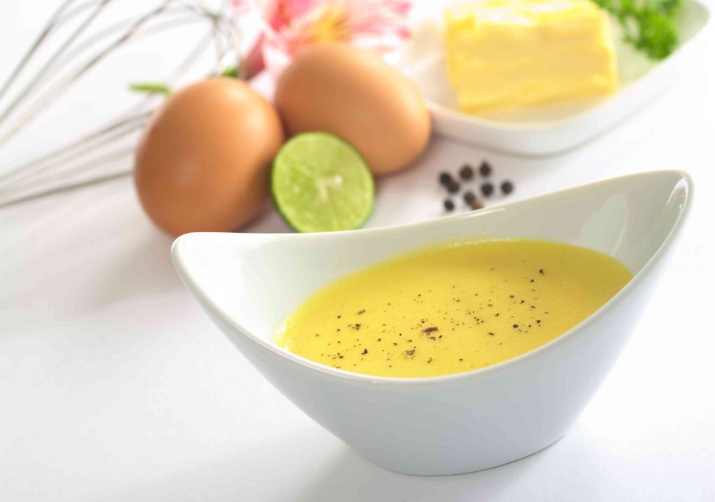 Голландский соус бархатный и нежный как шелковая ткань. Готовить такой соус советую непосредственно перед употреблением, чтобы он не потерял своей деликатности. Отварная спаржа, капуста, эндивий, цуккини - в общем, большинство овощей великолепно дружат с голландским соусом, которым он, в свою очередь, придает изысканности, оттеняет и дополняет их вкус. Порций – 4 шт., Время приготовления – 10 мин. Ингредиенты: · желток – 6 шт., · сливочное масло - 200 гр., · лимонный сок одного лимона, · лук репчатый (шалот) - 1 шт., · черный перец горошком - 1 ч.л., · кайенский перец – щепотка, · уксус винный - 6 ст.л., · лед (может понадобится) · соль. Готовим голландский соус так: 1. В сотейнике, на очень слабом огне, а еще лучше на водяной бане, растапливаем сливочное масло и варим его около 15 - 20 минут (получим топленое масло). Во время варки снимаем шумовкой образующуюся пену. А затем масло переливаем в какую-нибудь посуду и даем ему остыть до практически комнатной температуры, но так, чтоб