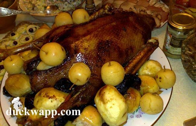 Рецепт гуся запеченного с яблоками — классический рецепт из русской кухни. Это блюдо прекрасно подходит к любому праздничному столу и может украсить собой новогодний праздник. Издавна запеченный гусь с антоновскими яблоками украшал собой праздничный русский стол. Ингредиенты: Сам гусь. Можно купить в магазине, но лучше приобрести из частных рук. Самые лучшие гуси те, которых забили после выпадения первого снега.