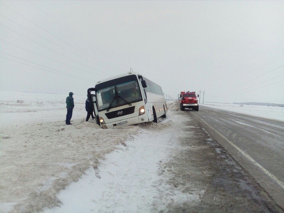 В нем ехали 15 человек. Авария произошла в субботу, 9 марта, в 11:32 в Безенчукском районе Самарской области. По данным ГУ МЧС по Самарской области, на 120 километре дороги «Самара-Приволжье» рейсовый автобус съехал в кювет. На место происшествия выехали три спасателя. В автобусе находились15 пассажиров и водитель. Пострадавших нет. Причина ДТП устанавливается. Фото ГУ МЧС по Самарской области.