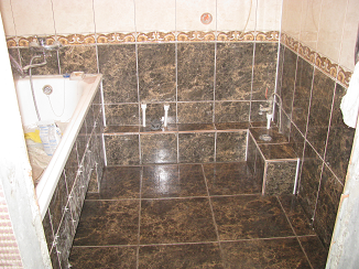 Нам нужно установить смеситель так,что бы его круглые чашечки плотно прилегали к плитки.Для этого мы сначала выравниваем поверхность под плитку.Затем мы размечаем где будет стоять смеситель и трубу подводящие к нему воду.Перфоратором выдалбливаем в стене углубления,достаточные для того ,что бы в них уместились трубы и смеситель. Для смесителя берём специальную установочную планку, в них устанавливаем удлинители резьбы и на их крепим смеситель.С помощью полипропиленовых труб собираем подвод воды к смесителю ,на стене крепим планку из металло-профиля по уровню.На планку ставим смеситель с трубками,а затем привариваем их к подводящим трубам.У нас смеситель теперь стоит приблизительно по уровню, нам нужно выставить его точно по плоскости и так что бы круглые чашечки плотно прижимались к плитки.Дляэтого берём две плитки из тех ,что мы будем укладывать на стену .На поверхности сверлим отверстия под дюбель -ежи диаметром 6 мл.,два из них будут поддерживать плитку снизу,а два сбоку,в них вкр