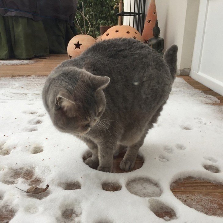 О сложных взаимоотношениях моего кота со снегом